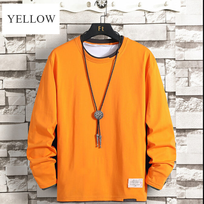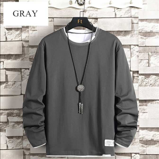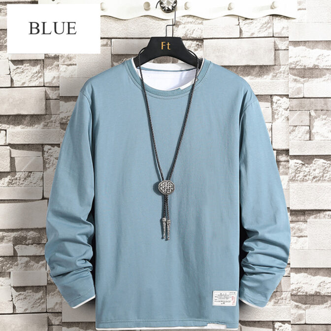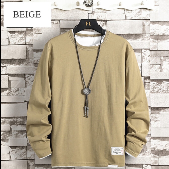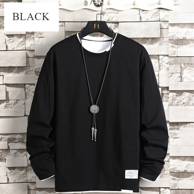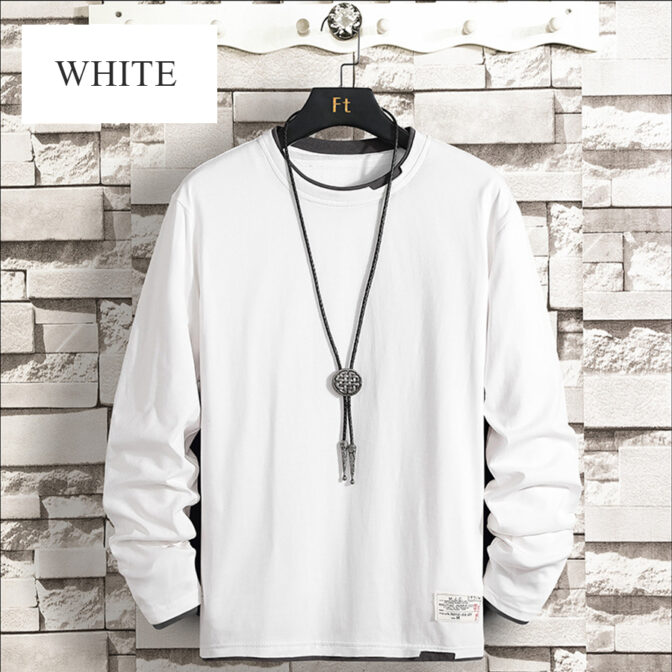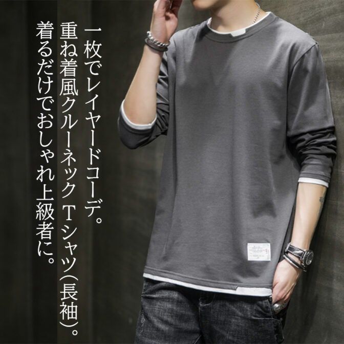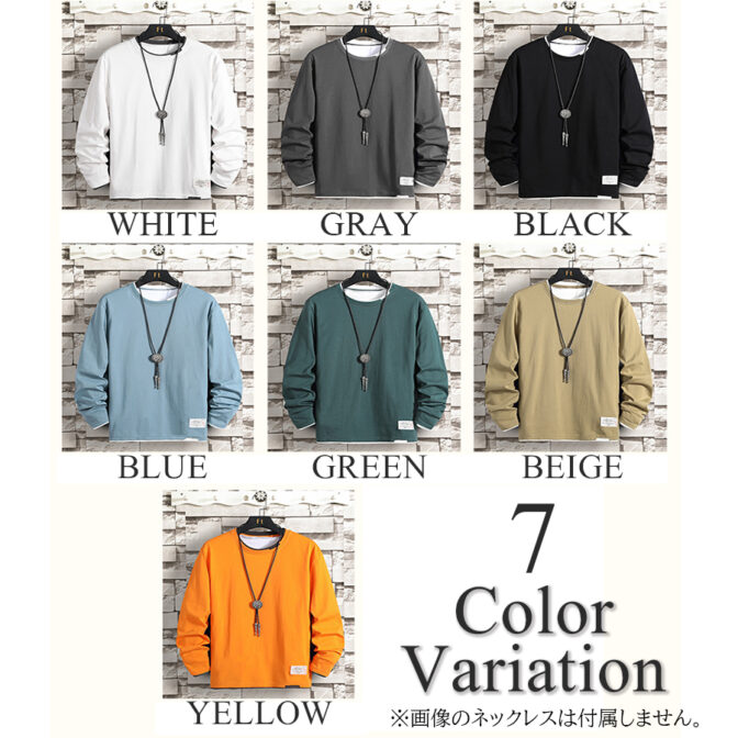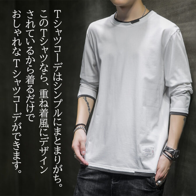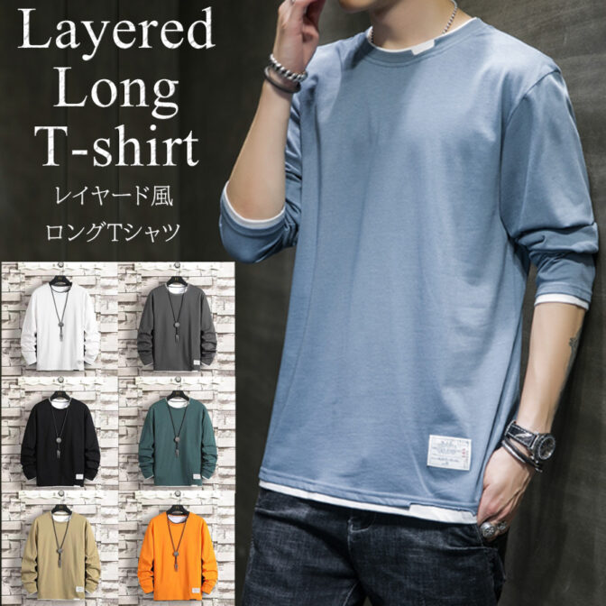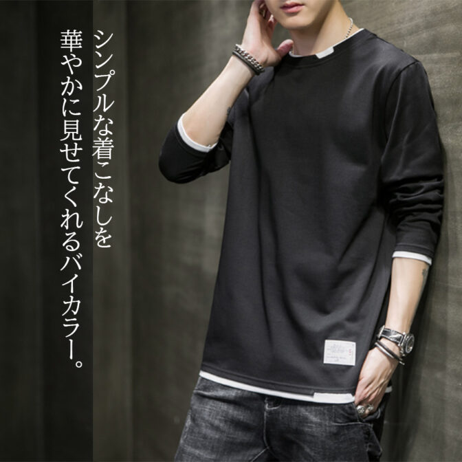 商品名:ロングTシャツ ロンt 長袖tシャツ メンズ カットソー 無地tシャツ 重ね着 レイヤード ワンポイント バイカラー